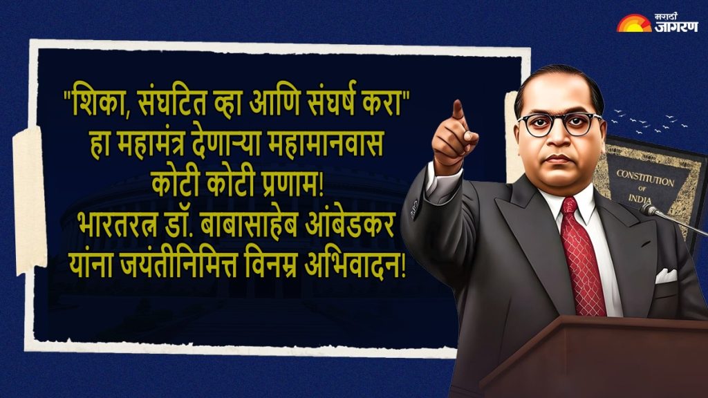 Ambedkar Jayanti 2026 Wishes In Marathi: डॉ. बाबासाहेब आंबेडकर यांची जयंती दरवर्षी 14 एप्रिल रोजी मोठ्या उत्साहात देश-विदेशात साजरी केली जाते. भारतीय संविधानाचे शिल्पकार आणि भारतरत्न डॉ. बाबासाहेब आंबेडकर यांनी आपले संपूर्ण आयुष्य समता, न्याय आणि बंधुभाव व शिक्षणासाठी खर्ची घातले.