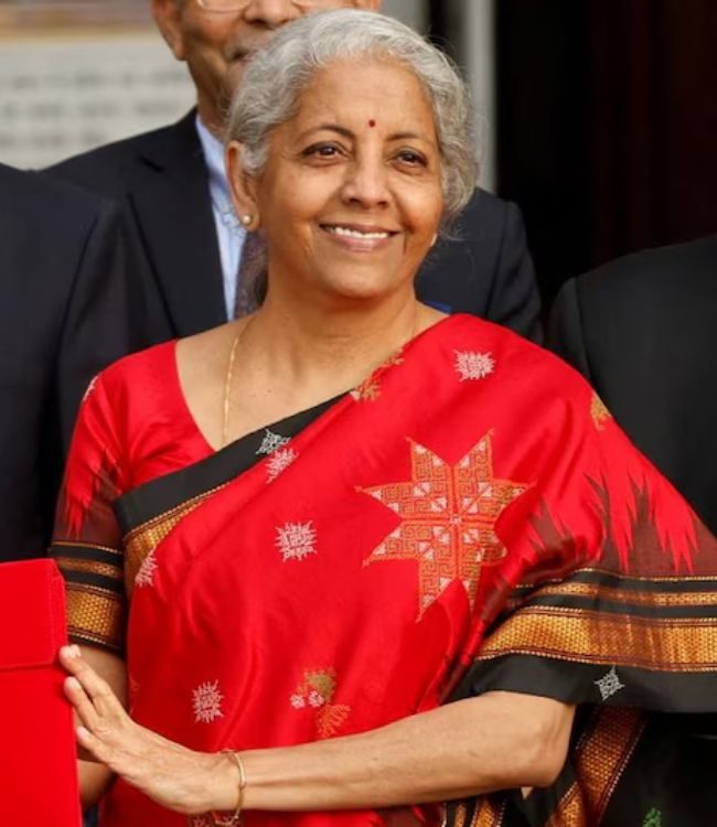 जुलै 2024 (पूर्ण अर्थसंकल्प) – निवडणुकीनंतर, त्यांनी एका नवीन सुरुवातीचे प्रतीक म्हणून मॅजेन्टा बॉर्डर असलेली ऑफ-व्हाइट हँडलूम साडी परिधान केली.