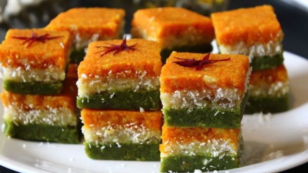 कोणताही भारतीय सण गोड पदार्थांशिवाय अपूर्ण असतो. तुम्ही नारळाची बर्फी बनवू शकता. नारळ पावडर कंडेन्स्ड मिल्कमध्ये शिजवा, त्याचे तीन भाग करा आणि फूड कलरिंग वापरा. त्यांना एकावर एक रचून घ्या आणि बर्फीच्या आकारात कापून घ्या. ही गोड मेजवानी उत्सव संस्मरणीय बनवते.