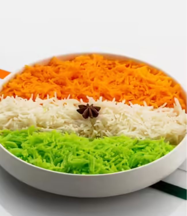 तुमच्या जेवणाच्या टेबलावर तिरंगा पुलाव एक उत्तम भर घालू शकतो. भात तीन वेगवेगळ्या भांड्यांमध्ये शिजवा. एका भागात संत्र्याचा रस किंवा केशर घाला आणि दुसऱ्या भागात साधा पांढरा ठेवा. तिसऱ्या भागात बारीक चिरलेले बीन्स, वाटाणे आणि पुदिन्याची पेस्ट घाला. वाढताना त्यांचे थर लावा. बासमती तांदळाचा सुगंध आणि रंगसंगती ही एक अनोखी डिश बनवते.