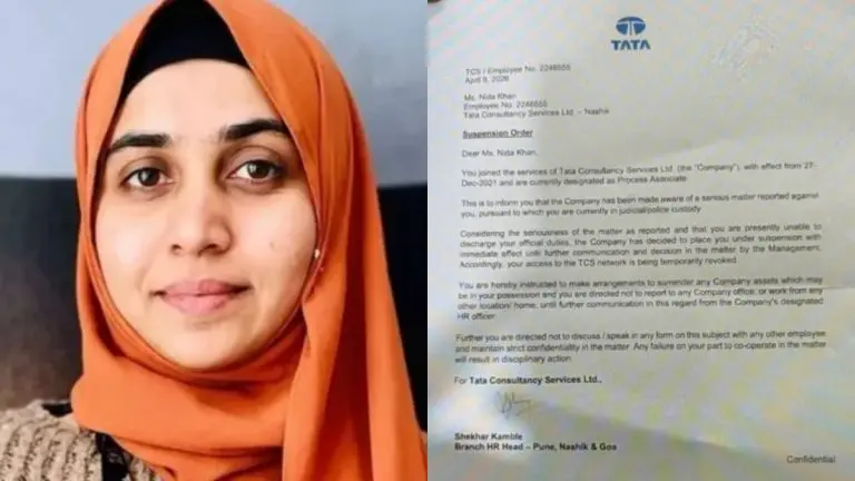 9 एप्रिल 2026 रोजी जारी करण्यात आलेल्या या पत्रानुसार, निदा खान या 27 डिसेंबर 2021 पासून टीसीएसमध्ये ‘प्रोसेस असोसिएट’ पदावर कार्यरत होत्या. मात्र, त्यांच्या विरोधात गंभीर प्रकरण नोंदवले गेले असून त्या सध्या न्यायालयीन/पोलीस संबंधित प्रकरणात असल्याची माहिती कंपनीला मिळाली आहे. या पार्श्वभूमीवर त्यांना तात्काळ निलंबित करण्यात आले आहे. पुढील निर्णय होईपर्यंत निलंबन कायम राहणार.कंपनीच्या नेटवर्क व सिस्टीम्सवरील त्यांचा ऍक्सेस तात्पुरता बंद करण्यात आला आहे.